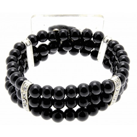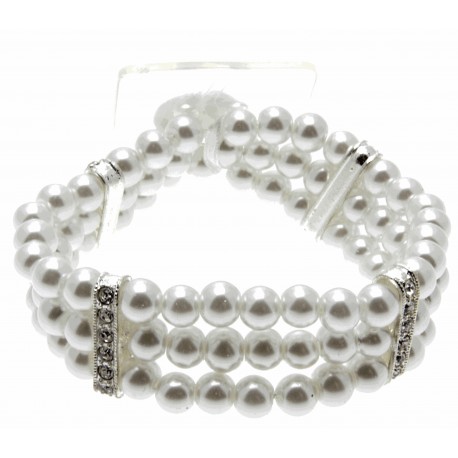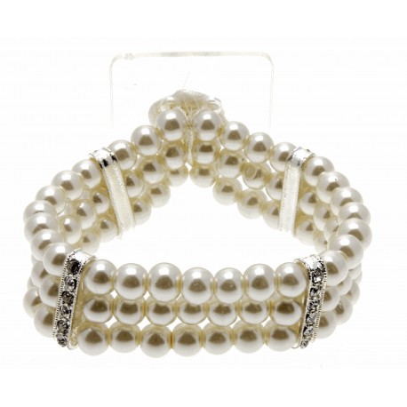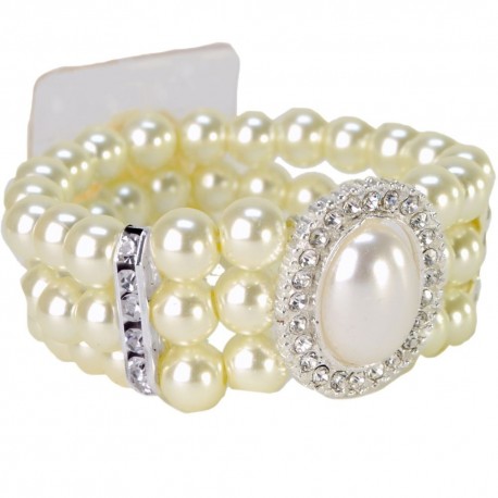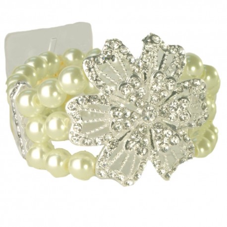 Wide Silver Pearl Wristlet With Diamante Embellishments