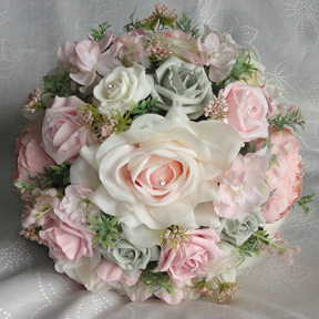 Vintage Style Blush Pink, Silver Grey, Baby Pink & Ivory Bridal Bouquet