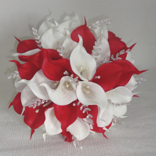 Red & White Real Touch Calla Lily & Crystal Gem Bouquet