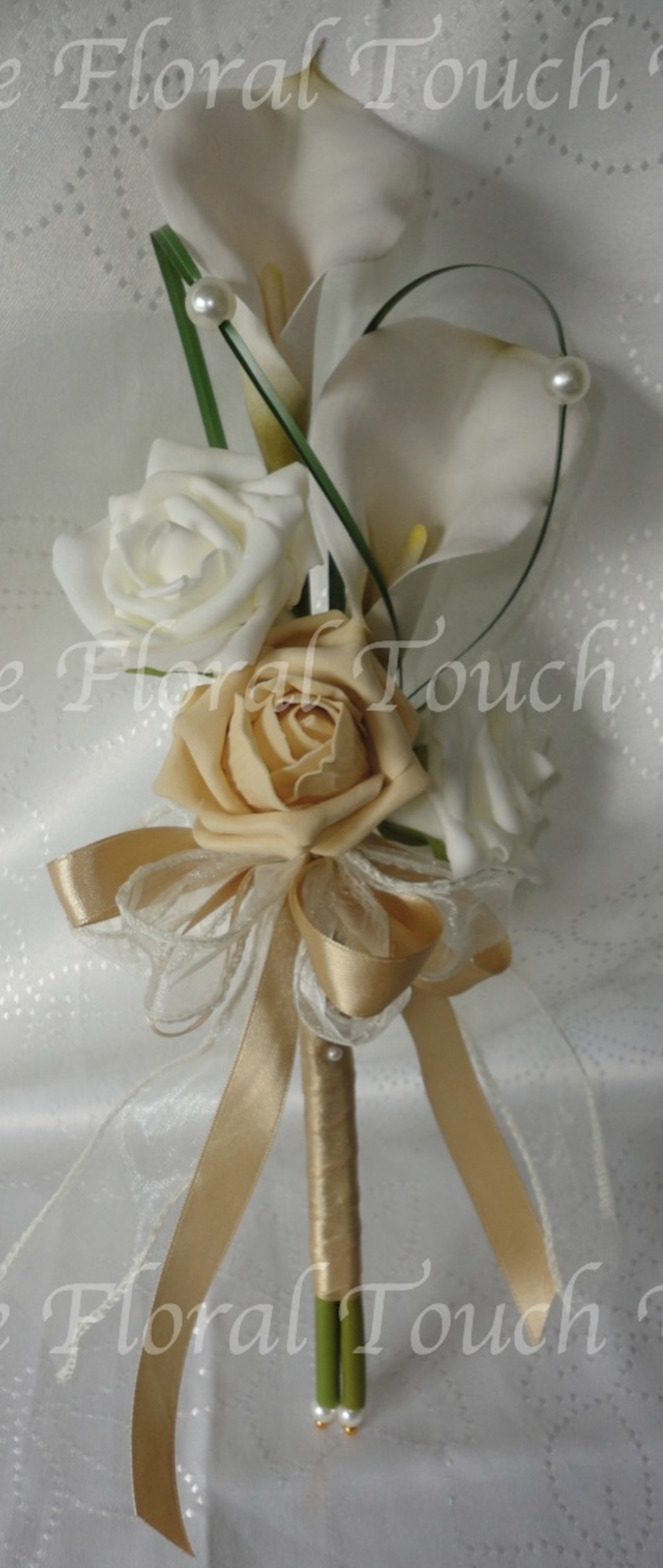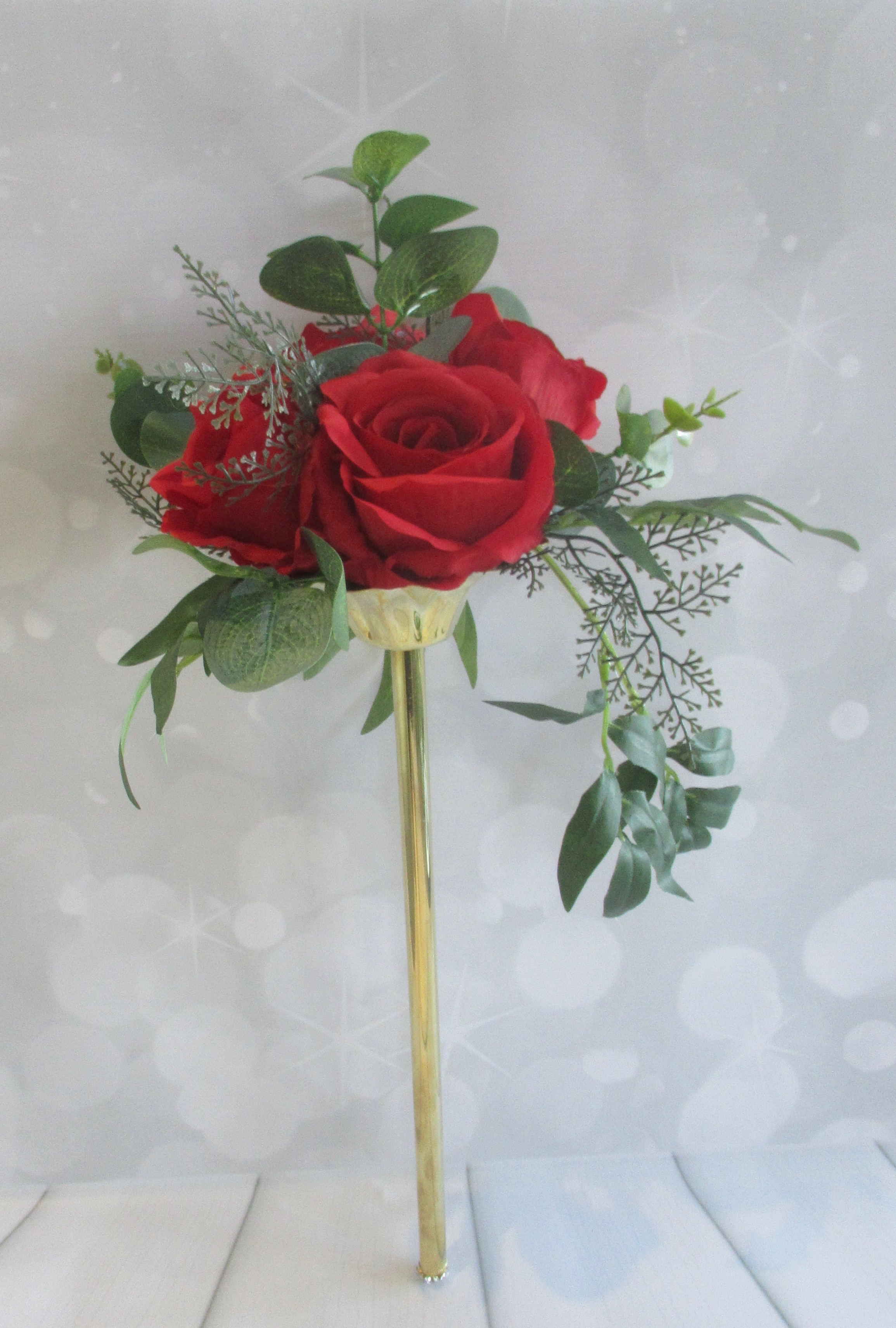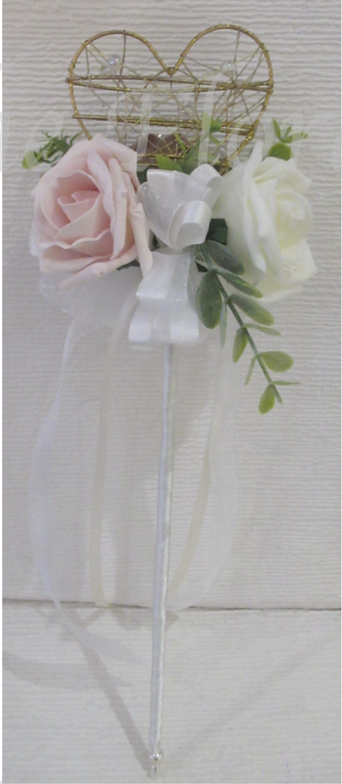 Beautiful alternative to a bouquet or basket this silk rose Gold floral wand can be created to match with your wedding flowers