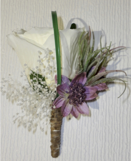 Rustic Style Purple Rose & Mixed Foliage Buttonhole