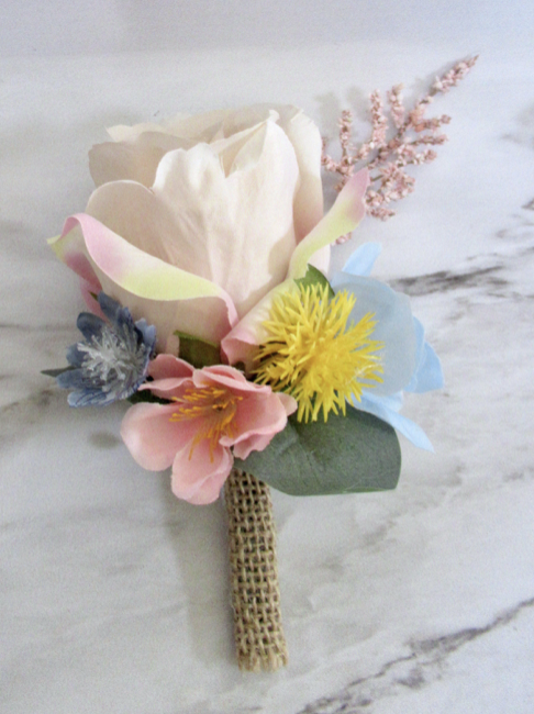 All our buttonholes can be created with twine, hessian or satin ribbon to the stem - prices may differ slightly