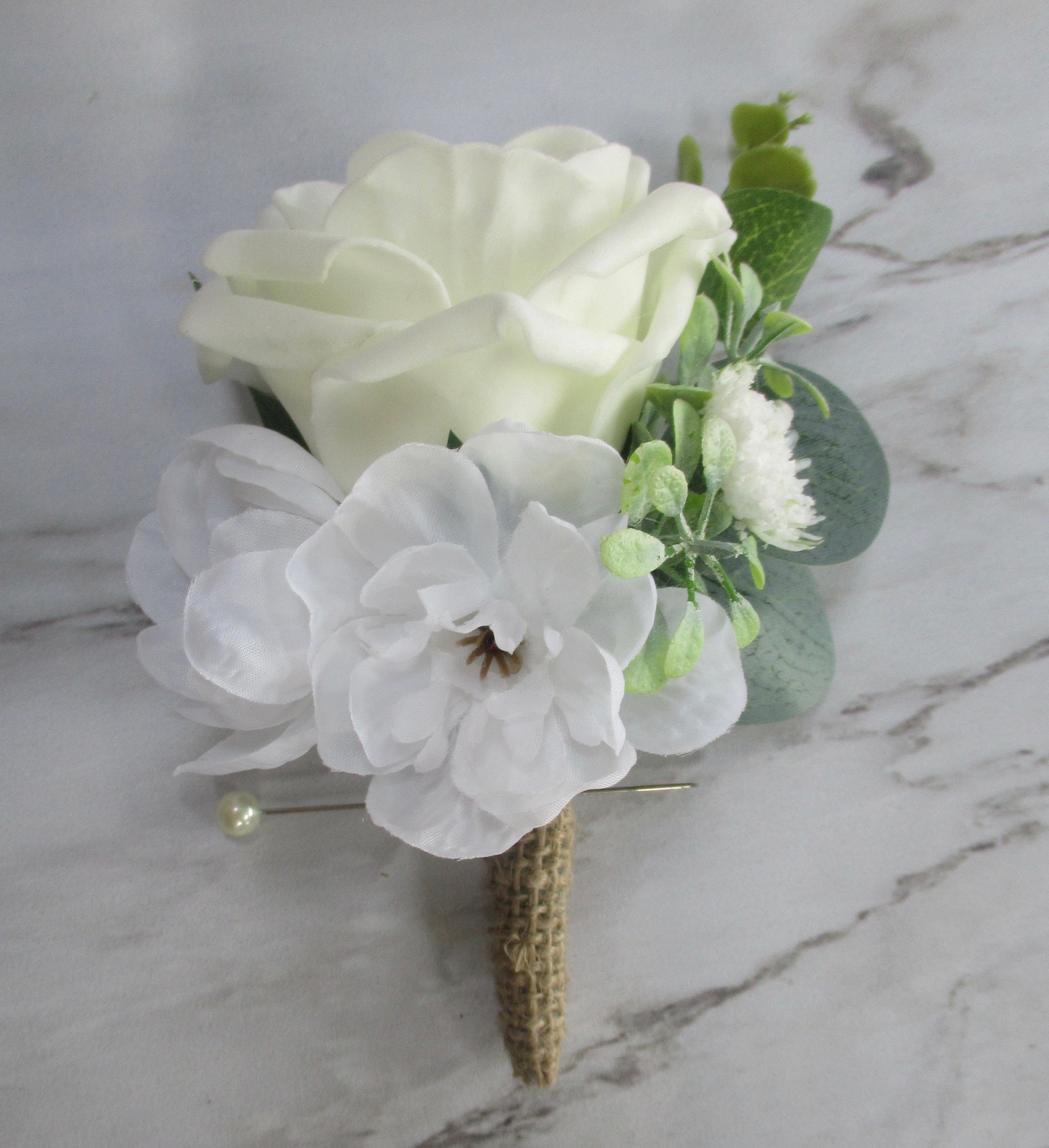Rustic Style Ivory Rose & Mixed Foliage Buttonhole