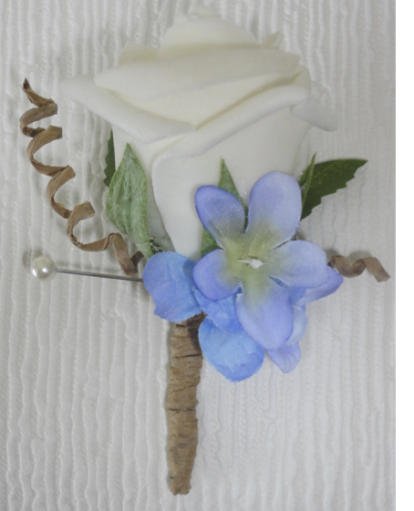 Ivory Rose with Blue Hydrangea Rustic Style Buttonhole