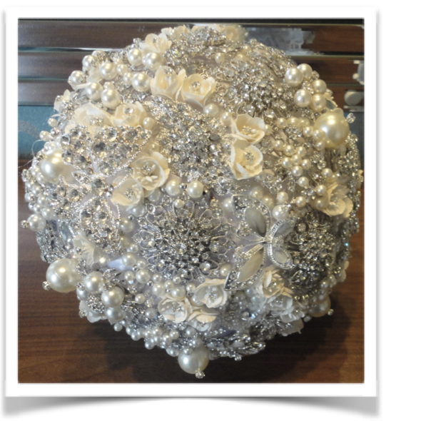 Please note the variety of high quality brooches & embellishments differs with each design as each bouquet is unique.